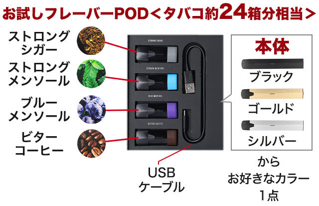 旧モデルから使っていて、今回typeXに変えました。吸える回数が増えたので、より節約できるようになりそう^_^ 初回4種類のフレーバーが全て試せるのは良かったです!