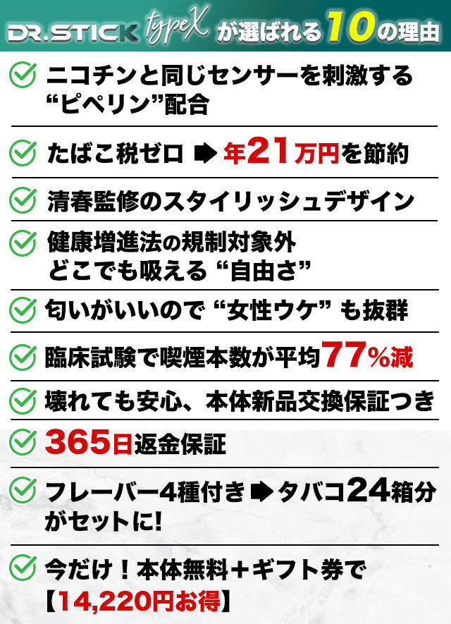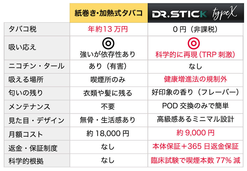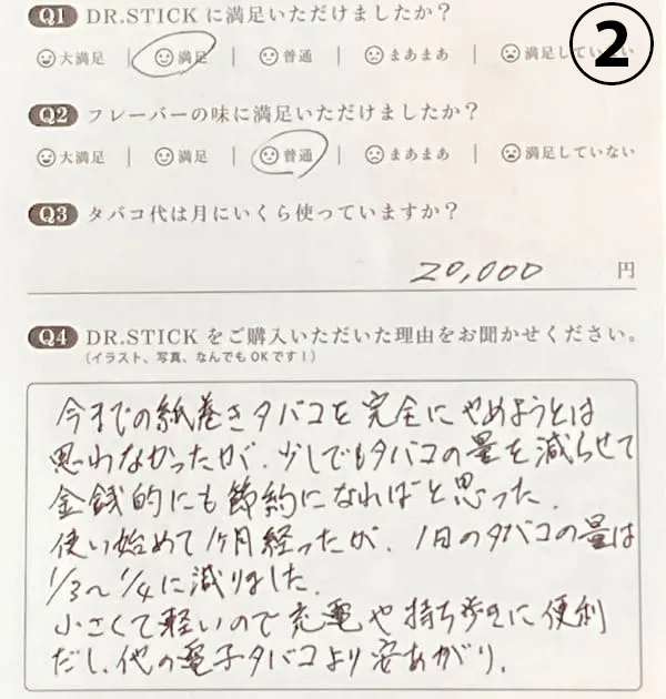 Dr.SticktypeXにして、正解でした!吸える量が凄いので、節約できています。理想の電子タバコと出会えて幸せです♪