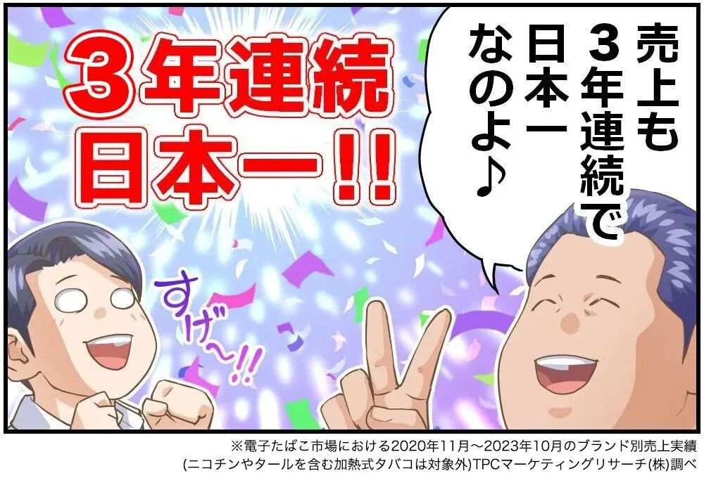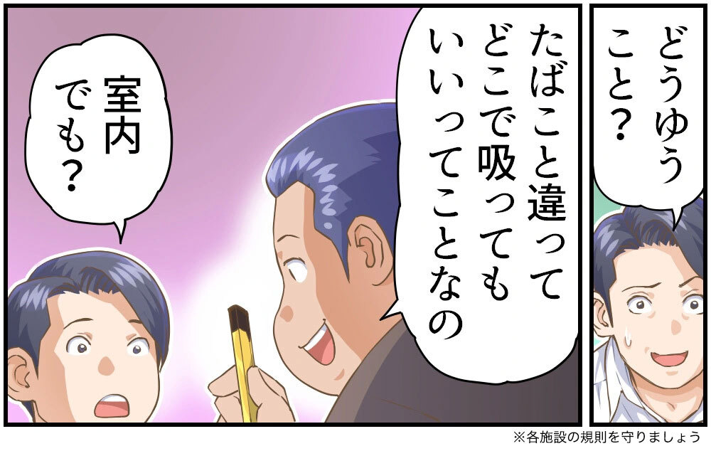 タバコ特有の嫌な臭いがないので、お家で吸えます!家族に迷惑が掛からないので手放せません!